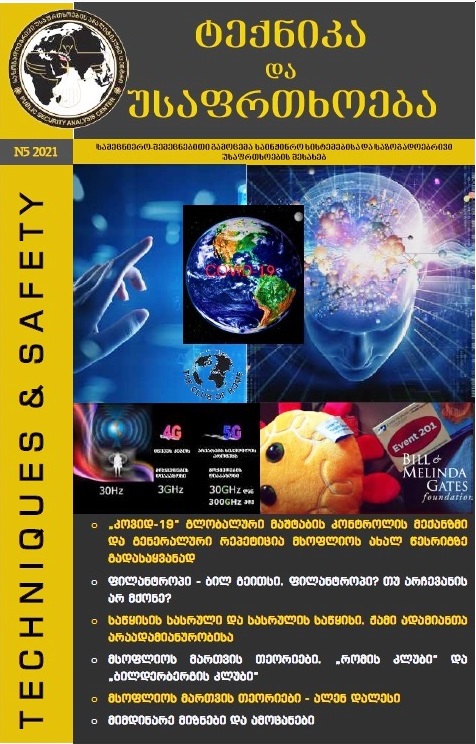 აღნიშნულ გამოცემაში "ტექნიკა და უსაფრთხოება" N5, გაეცნობით ა(ა)იპ "საზოგადოებრივი უსაფრთხოების ანალიტიკური ცენტრის" მიმდინარე მიზნებსა და ამოცანებს; კოვიდ-19-ის, როგორც კონტროლის მექანიზმის გამოყენება, ახალი წესრიგის დასამყარებლად; მაიკროსოფტის დამფუძნებლის, ბილ გეითსის ბიოგრაფიას, მისი განვითარების და სასამართლოს განჩინების საფუძვლებს; გაეცნობით თანამედროვე საკაცობრიო მიღწევებს, ნაკლებად ცნობილ ექსპერიმენტებს და კვლევის შედეგებს, ტექნოლოგიების, არქეოლოგიის, გენეტიკის, ფიჭური კავშირგაბმულობის, მედიცინის, სამხედრო ტექნოლოგიების და მომავლის ახლად ფორმირების გზებს; მსოფლიოს მართვის თეორიებს, მათ ავტორებს და ორგანიზაციებს, რომლებიც აქტიურად არიან ჩართული პლანეტაზე არსებული პრობლემების გადასაჭრელად.